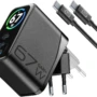 Das PowerView IQ 67W Wandladegerät-Set gehört zur neuen Produktreihe von Cellularline, die für hohe Leistung, volle Kontrolle und maximalen Komfort entwickelt wurde. Das integrierte Smart-TFT-Display ermöglicht die Echtzeitüberwachung der Ladeparameter jedes Anschlusses, einschließlich abgegebener Leistung, Wattzahl und Temperatur, und gewährleistet so Transparenz und Sicherheit während der Nutzung. Ausgestattet mit zwei 67W USB-C-Anschlüssen, einem 30W USB-A-Anschluss und einem 150 cm langen 5A/100W USB-C-Kabel (im Lieferumfang enthalten) ermöglicht es das gleichzeitige Laden mehrerer Geräte. Die GaN+-Technologie sorgt für hohe Leistung in einem kompakten Design, während der klappbare Stecker die Tragbarkeit verbessert und das Ladegerät beim Transport schützt.