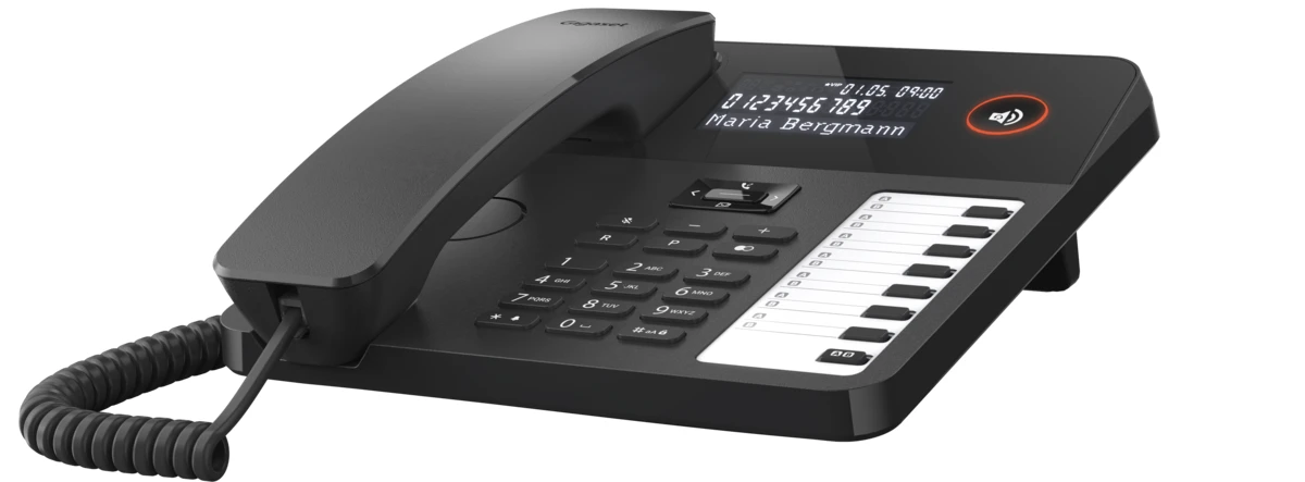 Das schnurgebundene Gigaset DESK 600 mit LC-Display und sieben doppelbelegbaren Direktwahltasten ist ideal für die Nutzung zu Hause oder im Büro.